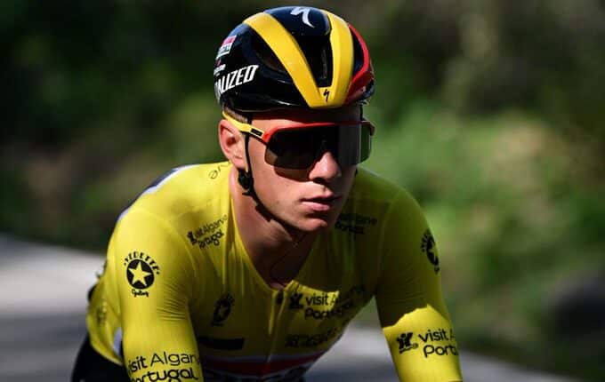 “I am very happy with the final victory,” said Evenepoel immediately after crossing the finish line in Alto do Malhão. “Also with the team’s performance. It was a complicated situation on a difficult stage, with a breakaway group of 20 cyclists and an attack by Wout van Aert.”